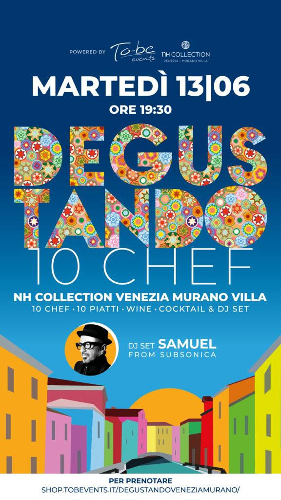 Il 13 Giugno dalle ore 19:30, nella splendida Murano, per un’edizione speciale del suo gourmet tour italiano arriva Degustando. Un’isola nella Laguna veneta, ricca di storia e intrisa di magia, per questa edizione di alta gastronomia e dj music. Location dell’evento NH Collection Venezia Murano Villa, situato nell’ex fabbrica del vetro De Majo con vista panoramica sulla Laguna, che ha preservato l’essenza storica dell’edificio in una calda atmosfera di eleganza e stile.