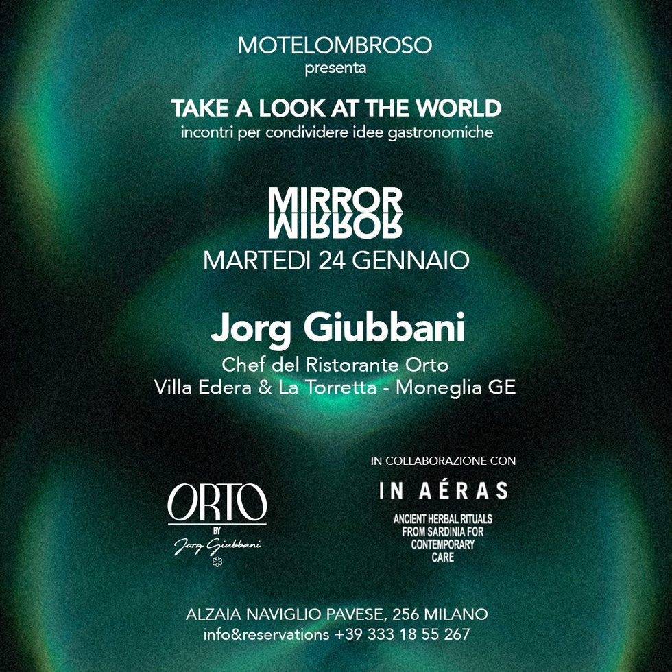 Ciò significa saper adattare la propria offerta e fare in modo che le tecniche utilizzate per la preparazione dei piatti tengano conto delle svariate proprietà degli ingredienti, delle sfumature di gusto apportate dai diversi tipi di cottura e dal saperle coniugare con condimenti ed erbe differenti. E in un certo senso, sono proprio quest’ultime a divenire il terreno comune su cui è stato ideato il 4 mani in programma martedì 24 gennaio: Mirror, per la serie di incontri “Take a look at the world” promossa da Motelombroso e dal suo team.