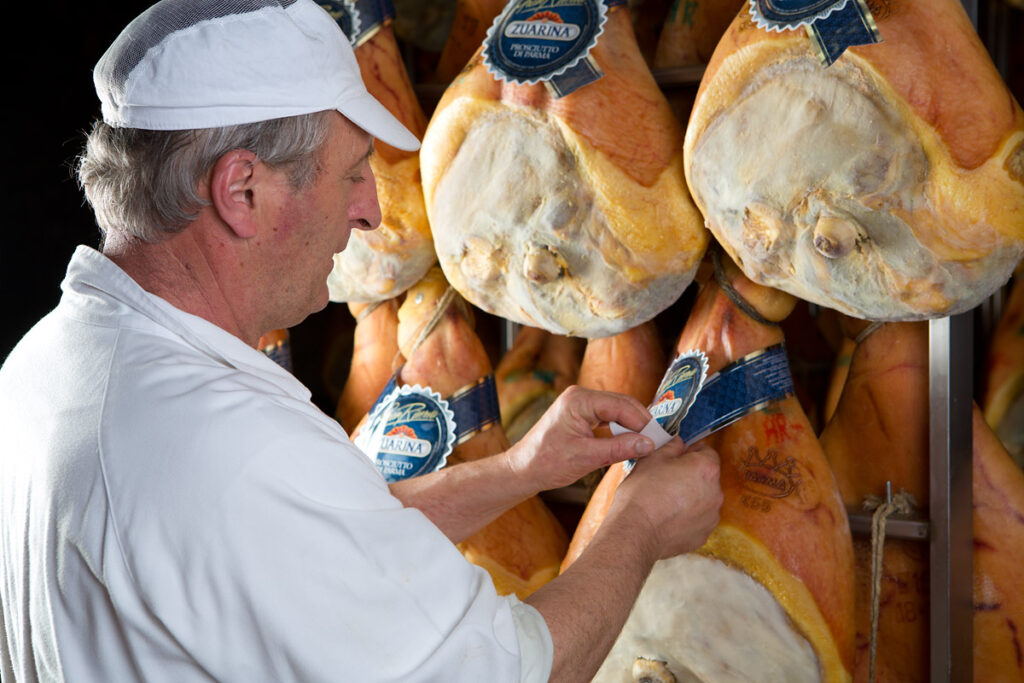Ma nell’intero processo produttivo sono diversi i passaggi complessi e delicati, in cui sono le più piccole attenzioni e i dettagli a generare valore. Come ad esempio la fase di riposo “a freddo”, che in Zuarina dura più a lungo della media del settore. In questo modo il poco sale che viene utilizzato sulle cosce ha il tempo di diffondersi, conservare e stabilizzare. Niente conservanti, niente additivi; solo tempo, passione e cura della filiera: così nascono il gusto e i profumi unici di prodotti come lo speciale Crudo di Parma.