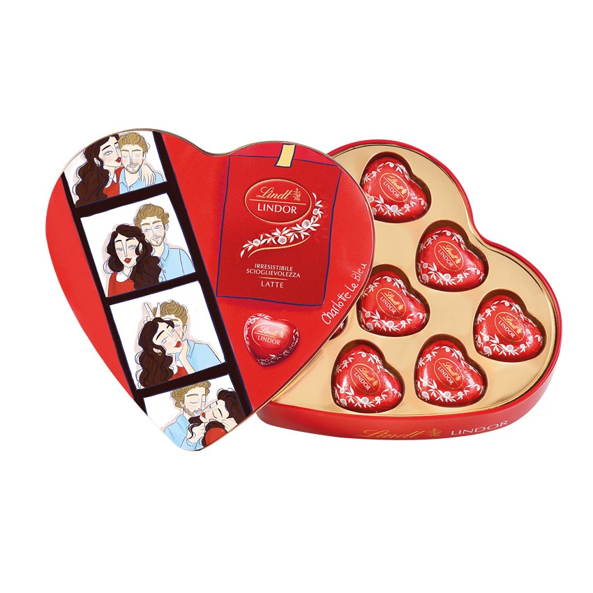 Per i veri choco lover il regalo perfetto è la scatola Cuore Lindor Latte con all’interno le famosissime praline che riprendono la stessa sagoma romantica.