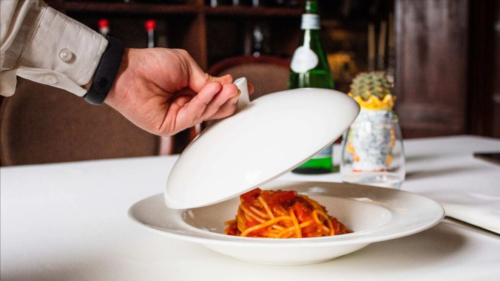 “Gli spaghetti ai tre pomodori – spiega lo chef – sono un classico per cui nutro grande rispetto che, in tutto il mondo, viene identificato come la pasta per eccellenza. Un primo che io stesso amo mangiare spesso e che mi dà grande piacere cucinare. È il piatto di cui, grandi e piccini, mi chiedono più spesso il bis, e questo mi riempie di gioia. È la ricetta più amata dai bambini, ma anche quella che più incuriosisce gli adulti, che vedendola presente in un ristorante di alta fascia come il Don Camillo, arrivano alla conclusione di doverlo assolutamente provare.”