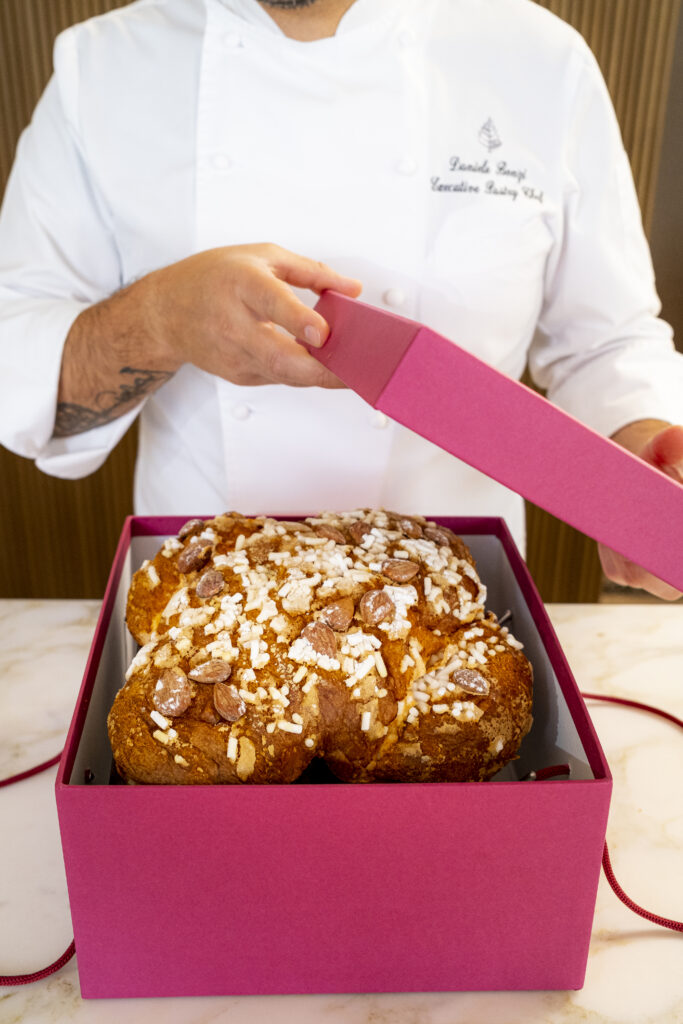 Al ristorante Zelo sarà possibile acquistare la colomba pasquale realizzata dal Pastry Chef dell’hotel Daniele Bonzi: 36 ore di lavorazione che hanno permesso di creare un aroma unico, conferito dalla pasta di arancia candita, miele di acacia, vaniglia Gran Cru Thaiti e Madagascar bio. Un connubio di sapori, quello donato dalle note di agrumi dei canditi di arancia calabrese, uniti al gusto aromatico delle mandorle siciliane. La colomba di Four Seasons Hotel Milano è disponibile al prezzo di 55 Euro.