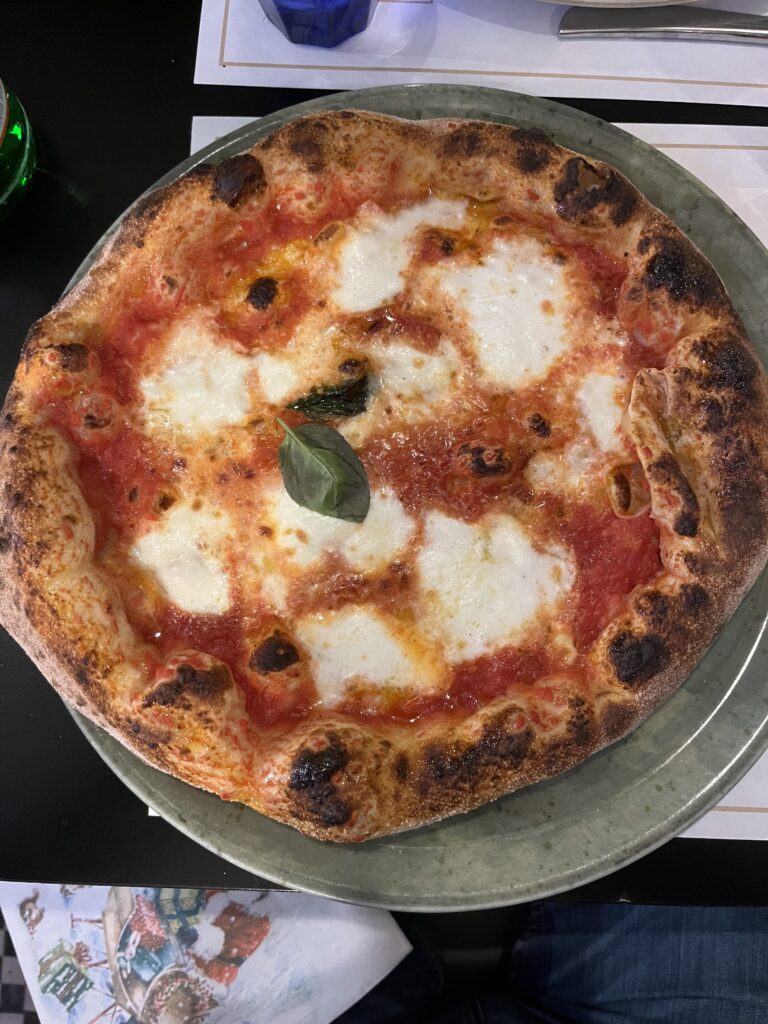 La Pizza Verace è fatta con pomodoro, mozzarella di bufala, basilico e grana padano: alla vista si presentava ben cotta, con un cornicione importante ben sbocciato: l’impasto morbido e allo stesso tempo croccante e fragrante si sposava alla perfezione con una materia prima di ottima qualità. Il sapore del pomodoro con la mozzarella ricordava un piatto di pasta della “nonna”. Una pizza seppur semplice, davvero impossibile da non ordinare.