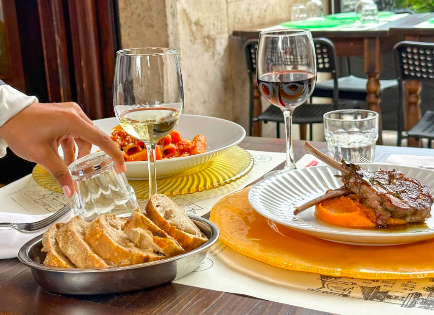 La filosofia del ristorante Ristoro degli Angeli viaggia sulla qualità sia sul mangiare che sul bere: costante è la ricerca e lo studio della materia prima, la scelta dei prodotti agricoli biologici e a km 0 dove possibile, l’utilizzo di nuove tecniche di cottura e per la conservazione degli alimenti, la selezione di cantine d’eccellenza, la ricerca di vitigni tipici del territorio laziale e non solo.