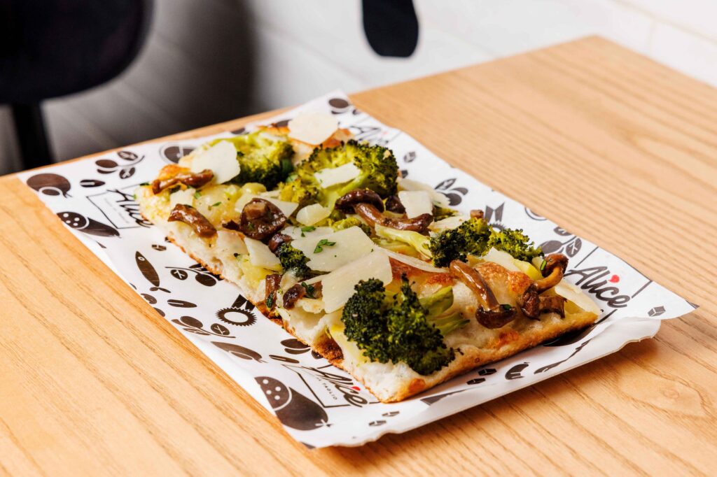 Alice Pizza, la prima catena italiana di pizza al taglio da asporto, in collaborazione con Parmareggio e il Consorzio del Parmigiano Reggiano ha realizzato, in edizione limitata fino al 30 aprile la pizza “stagionale” con broccoli, funghi chiodini, patate e scaglie di Parmigiano Reggiano