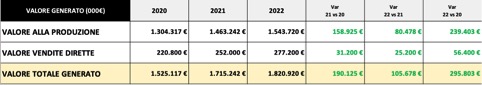 1,8 miliardi di euro giro d’affari alla produzione (+5,3%)