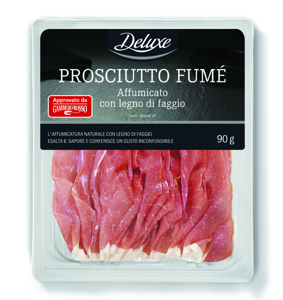 Sottoposto a una lenta cottura e a un’affumicatura naturale con legno di faggio, il prosciutto fumé di Deluxe è perfetto per farcire involtini di asparagi oppure panzerotti alla scamorza. Talmente buono che una fetta tira l’altra!