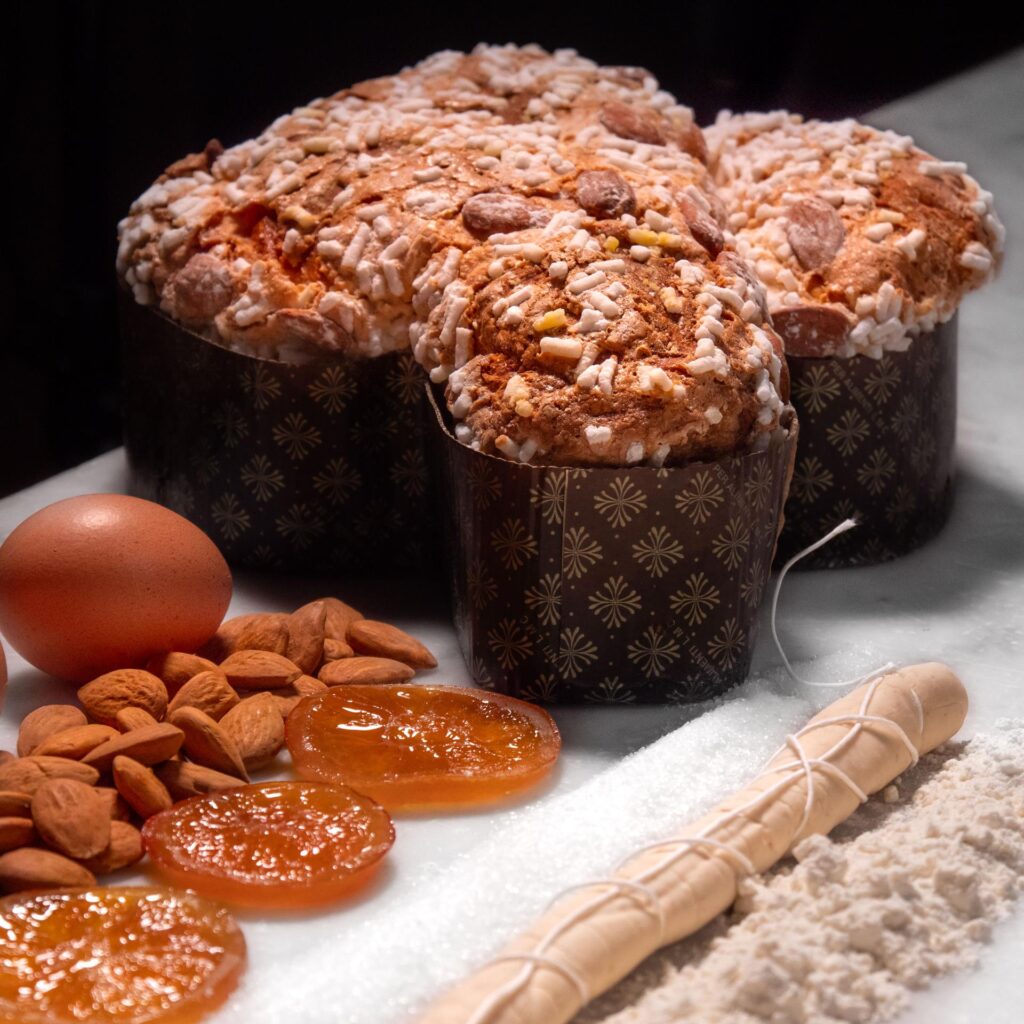 È realizzata utilizzando materie prime d’eccellenza: infuso di vaniglia Bourbon del Madagascar e cubetti di scorza di arance candite in vasca a cielo aperto con leggero sciroppo; soffice all’interno presenta all’esterno la ricca glassatura decorata con mandorle e pepite di zucchero.
