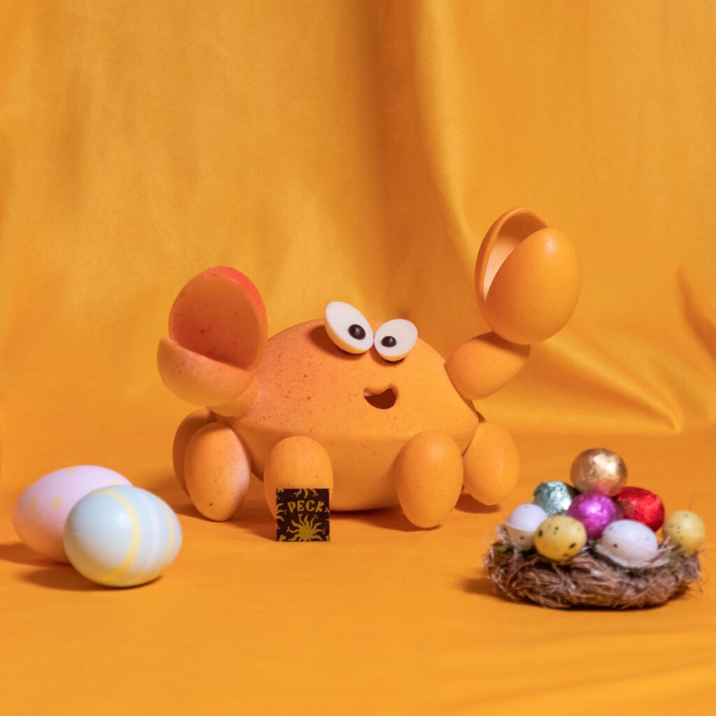 Immancabili le uova, le sculture di cioccolato e le Colombe che il brand di alta gastronomia propone per regalare preziosi momenti di condivisione durante le feste. Per la Pasqua 2023 spicca l’“Uovo alla Milanese”, una celebrazione alla città natale di Peck che da 140 anni incarna la tradizione e l’eccellenza gastronomica meneghina. Il cioccolato fondente si unisce al riso e allo zafferano, due tra gli ingredienti cardine della tradizione gastronomica lombarda, che creano così una combinazione di sapori unica. In aggiunta alle tradizionali uova sono disponibili due speciali personaggi di cioccolato a tema marino: Il Granchio e Il Pesce, pensati proprio come omaggio alla riapertura di Forte dei Marmi, che danno vita a un universo di cioccolato giocoso e colorato.