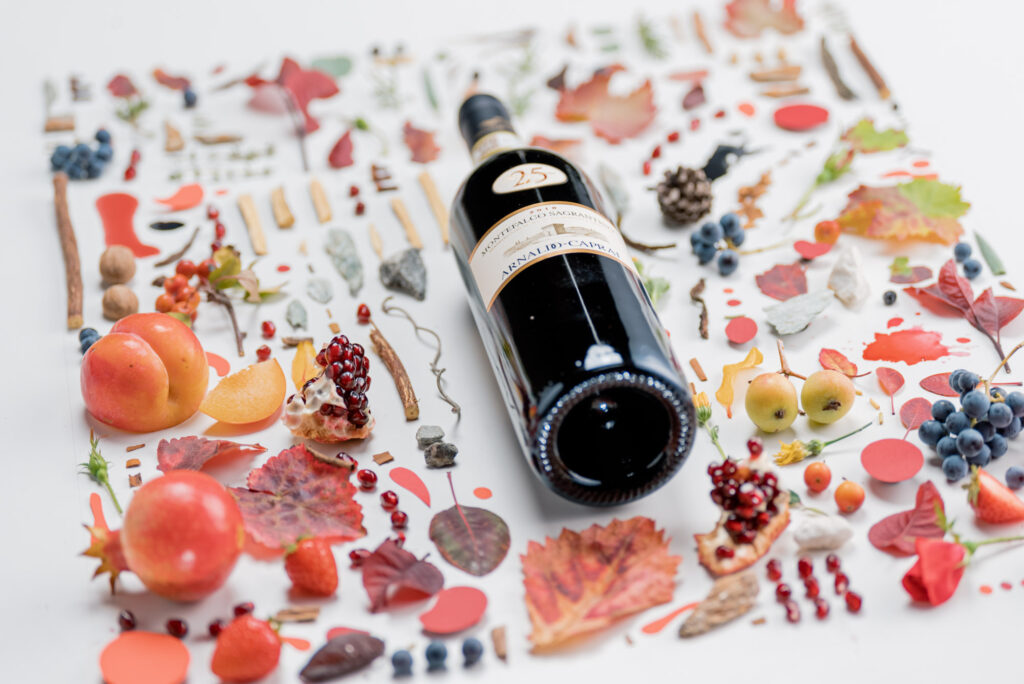 Le immagini create da Bernulia per i Sagrantino Arnaldo Caprai si pongono l’obiettivo di esprimere le diverse personalità di ogni etichetta, cercando di rappresentare però anche le fondamentali espressioni organolettiche dei diversi terroir della DOCG.