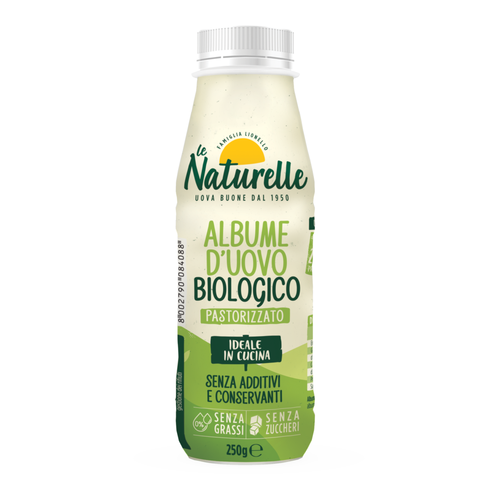 - le Naturelle albume d’uovo pastorizzato senza l’uso di antibiotici: ideale per preparare tante ricette dolci e salate, l’albume d’uovo pastorizzato antibiotic-free proviene da uova italiane deposte da galline allevate a terra senza l’uso di antibiotici e non contiene né additivi né conservanti. Disponibile sia in formato da 1kg che da 500g, in un pratico brik pronto all’uso e salva spreco con tappo svita e avvita.