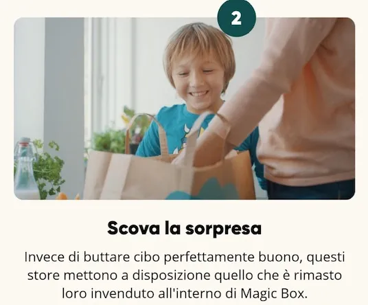 Visto il roboante successo di quest’app e del progetto che c’è dietro abbiamo provato ad utilizzarla. Innanzitutto bisogna scaricare l’App, disponibile sia sull’App Store Apple che su Google Play. L’app consente ai negozianti di proporre ogni giorno le Magic Box, delle “bag” con una selezione a sorpresa di merce con un importo definito a priori (esistono di tre tipologie, 2,99€ 4,99€ e 9,99€ (che contengano però merce “invenduta” di un importo superiore, esattamente 10, 15 e 20 Euro circa). Si possono trovare diverse tipologie di attività, dal forno alla pizzeria, dal bar al ristorante fino addirittura ad alcune catene di supermercati che hanno aderito all’iniziativa (ma non in tutte le città queste ultime).