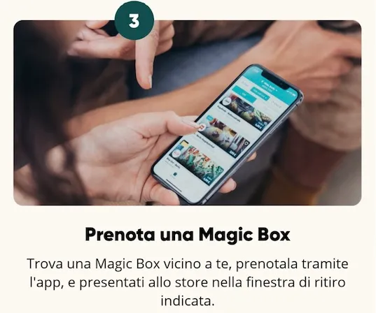 Una volta fatta la registrazione iniziale e geolocalizzata la propria posizione, si potrà iniziare a scegliere le magic box disponibili in zona.